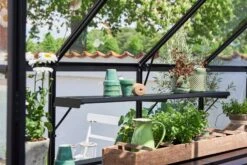 Wenn du noch mehr Stauraum und Ablagefläche in deinem „Qube“ Gewächshaus wünschst, dann ist dieses Regal die optimale Lösung. Das Regal besteht aus pulverbeschichtetem Aluminium und wird einfach in den Profilen des Gewächshauses montiert – schon hast du genügend Platz für Pflanzen, Werkzeuge und vieles mehr.